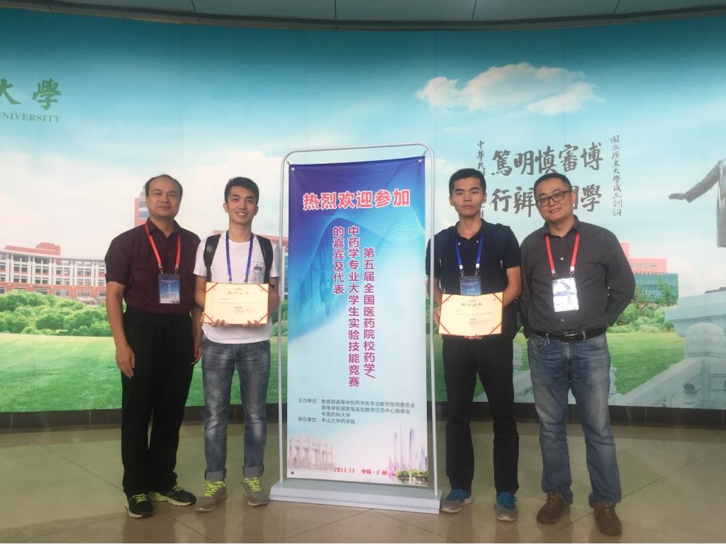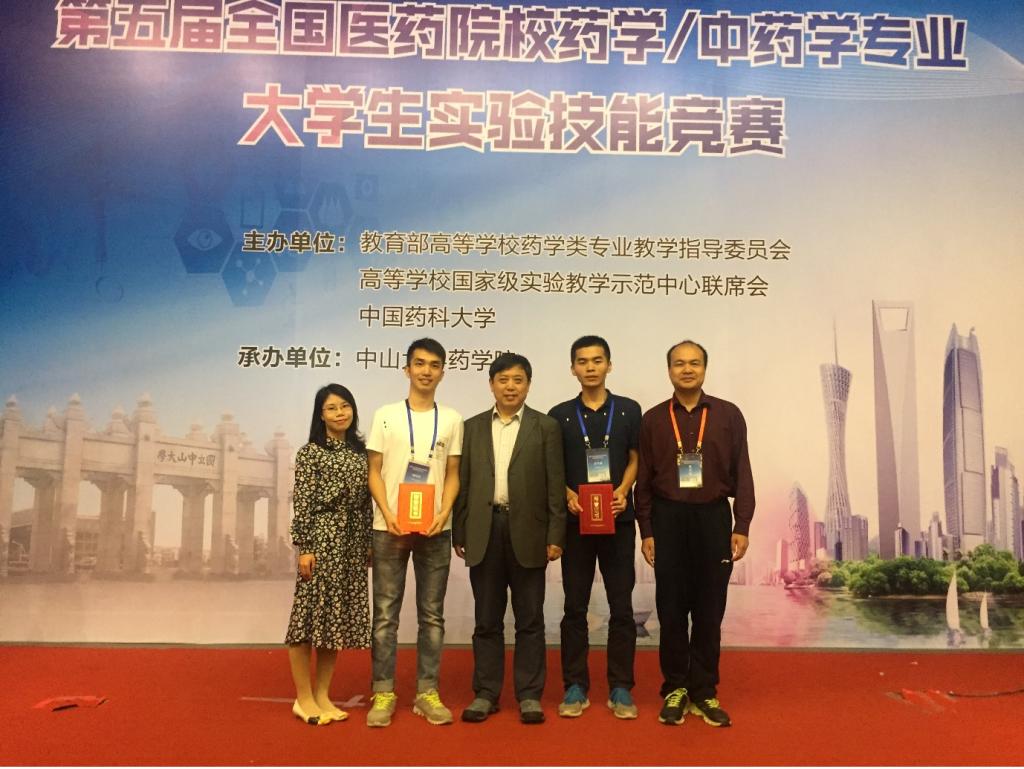 11月9-10日,第五届全国医药院校药学/中药学专业大学生实验技能竞赛在中山大学举行,437必赢会员中心参赛的两位同学周镇槟和彭学威分别斩获特等奖和一等奖。
