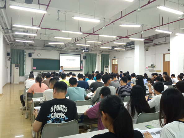 徐晖副院长介绍本次培训的主要意义与培训要求,强调实验室安全的重要性。刘永强老师围绕实验室安全防护基本要求、实验室常见生物安全问题及应对措施以及细胞培养间生物安全防护等方面详细讲述了实验室应注意和防护的各种细节。孙磊老师针对微生物实验操作规范、微生物相关实验仪器设备及实验室专门安全设备进行了详细的讲解。并强调学生开展实验要遵循规则,必须要严格按照实验室规章制度和操作规范进行,不得流于表面。实验室协管员代表覃嘉良对实验室存在安全隐患的具体情况进行了介绍和针对性分析,分享其他高校实验室发生的事故案例,并具体分析化学实验正确实验操作的重要性。陈立凯老师以近期发生的实验室安全事故为切入点,绍实验室安全主要隐患、实验室重点危险源的注意事项、实验室安全相关规章制度以及我校实验室危化品采购平台的相关情况等。