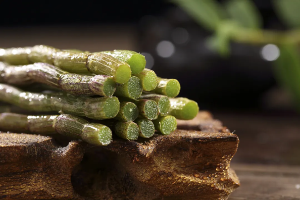秦汉时期我国第一部药学专著《神农本草经》记载铁皮石斛:"味甘,平。主伤中,除痹,下气,补五脏虚劳,赢弱,强阴久服厚肠胃",意思是铁皮石斛味甘甜,性平和,主治脾胃受损或功能虚弱,去湿除痹,降气,能够消除风、寒、湿邪等侵袭造成的多种虚弱症状,补益五脏,强健形体,滋阴,长期服用可增强脾胃功能,从而使人身体灵活,免疫力增强,延年益寿。