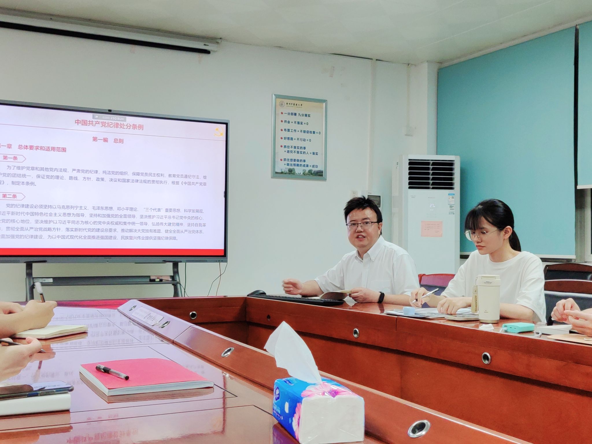 骆贞辉按照“原原本本学条例”的要求,带领全体党员逐字逐句学习了《中国共产党纪律处分条例》(简称《条例》),重点交流讨论了《条例》中“违纪与纪律处分”和“对违反政治纪律行为的处分”等章节。