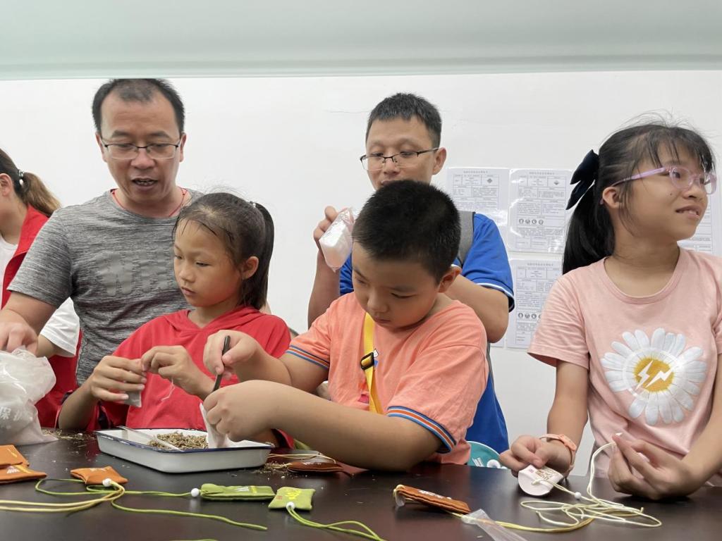 (孩子们在学习制作中药香囊)