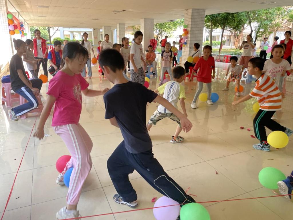 (孩子们在玩踩气球趣味游戏)
