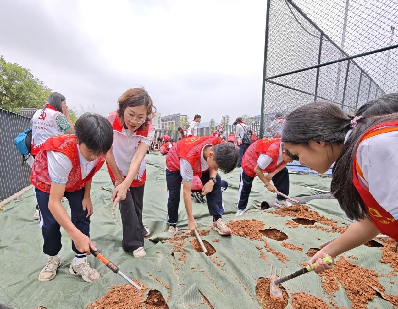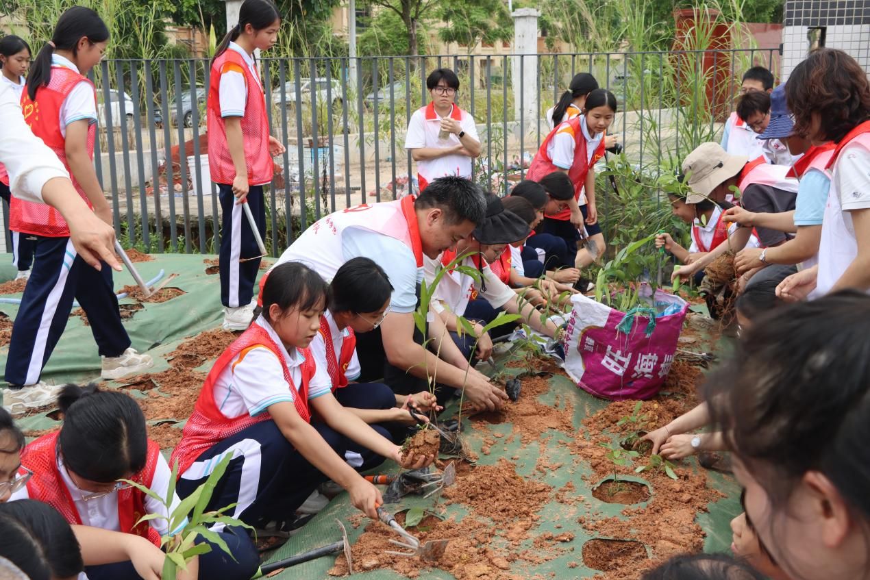 揭牌仪式后,中药资源与开发专业党支部、鲲鹏中学学生志愿者,在老师们的带领下开展劳动实践。大家分组协作,松土、栽培、覆土……中药学专业教授和大学生志愿者穿梭其中,示范种植技巧,并讲解药材的生长习性与药用价值。同学们认真聆听,将课堂知识融入劳动实践。