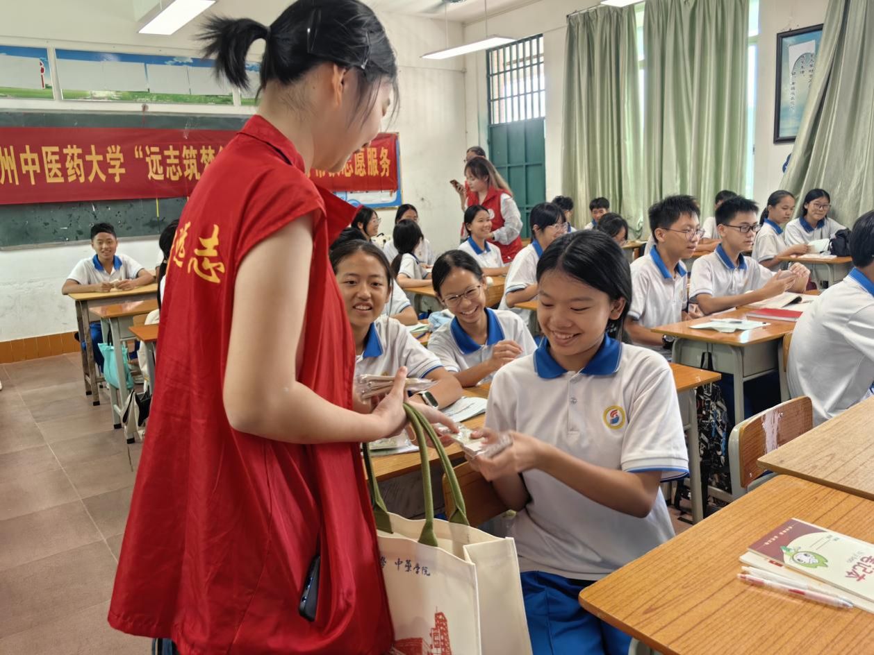 第一堂课,岭南八珍成了焦点。“小老师”抛个问题,小手齐刷刷举起;实物药材一亮相,观察形态、嗅闻气味,同学们秒变“中药小侦探”。有奖问答环节更是热闹,答对的笑脸比阳光还灿烂。