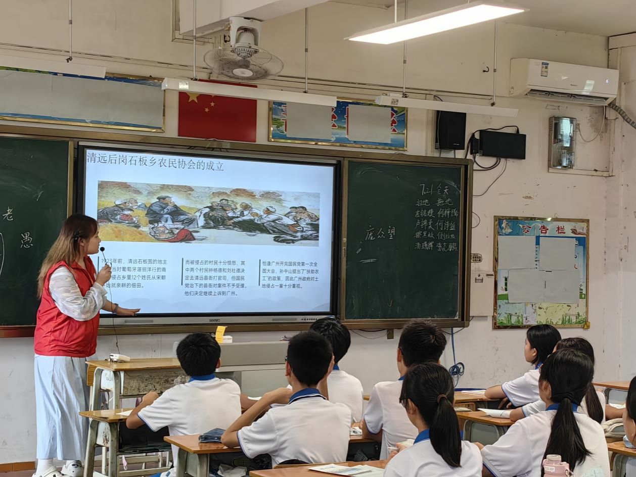 “清远也曾有过烽火岁月哦!”当“小老师”翻开历史的画卷,时间轴上的故事活了过来:大革命时期的呐喊、土地革命时期的星火、抗战时期的热血、解放时期的曙光……同学们瞪大眼睛听着家乡的英雄故事,心里悄悄种下了一颗叫“家国”的种子。