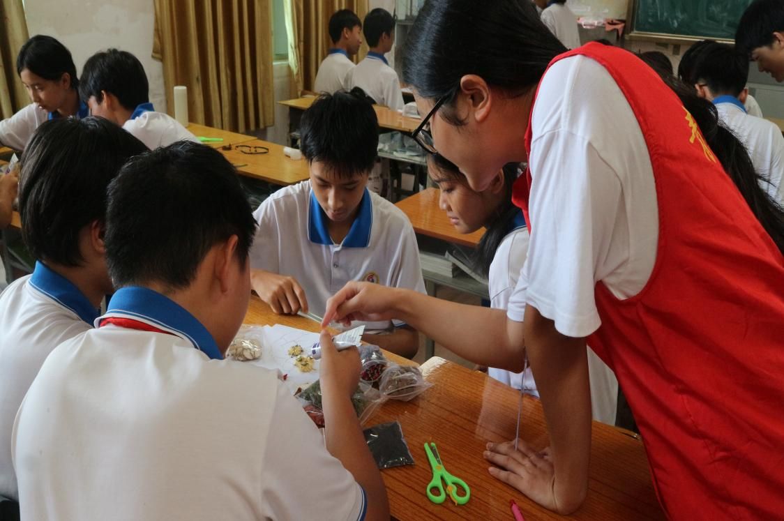 为让课堂有趣又有料,队员们围着教案“精打细算”:从岭南八珍的药香到祛湿养生的妙招,从急救技能到红色故事,再到药植拼画的巧思……反复模拟、打磨细节,连助教都悄悄记下要点,只为让每节课都像“宝藏”般吸引人。