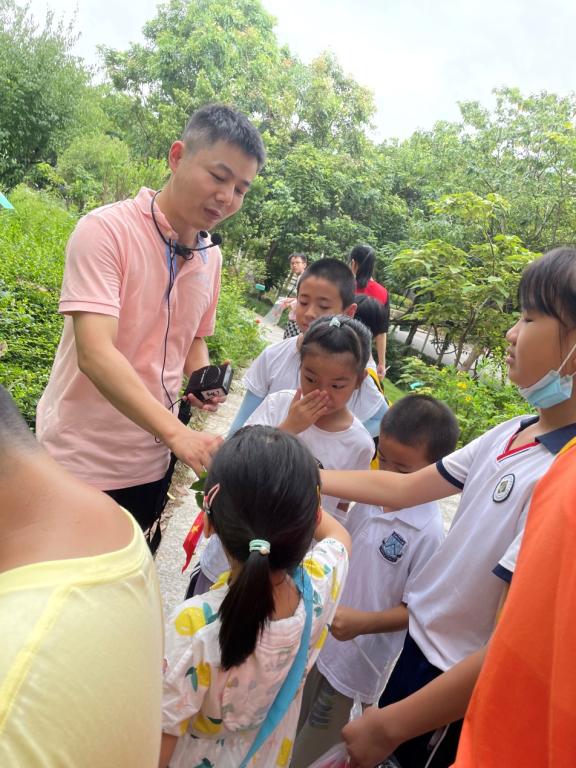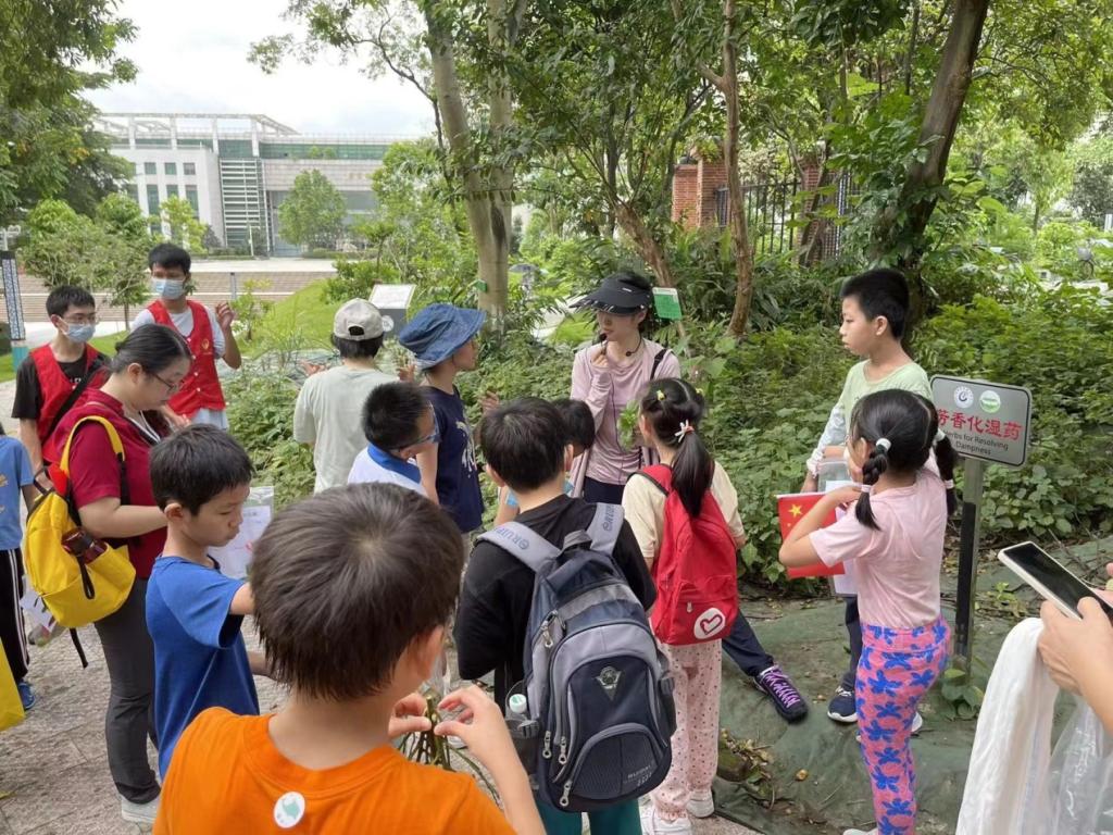 随后,孩子们在父母的陪伴下,在老师的指导下分组参观了药王山、时珍山。药山在夏日的阳光下,显得格外美丽。孩子们好奇地听着带队老师对药用植物的讲解,并不时提出“什么叫做下火呀”等问题,老师们都一一给予解答。在药山上,大人小孩一同“药山寻宝”,采摘、品尝黄皮果。接着,孩子们来到药王山阴棚,学习盆栽种植,老师讲解并示范盆栽种植的步骤及植物搭配技巧,引导小朋友们亲自体验,亲手种植,并每位小朋友赠送二盆太阳花、水仙花、小番茄等成品,让孩子们在家中继续种植盆栽,让孩子们能够直观感受植物生长,激发孩子们对植物的兴趣。