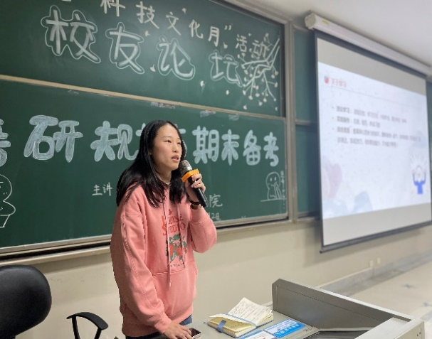 在问答互动环节,同学们积极提问,叶雅宜结合自身经历耐心解疑。面“试前复习资料”之惑,叶雅宜据自身经历推荐期末备考学习书目和学习方法;于“研究生考试”之问,叶雅宜分享其夏令营相关保研经历,介绍考研类别。