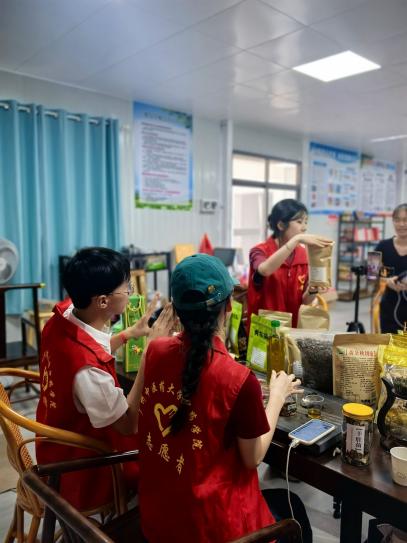结合调研结果,队员们摇身一变成为“助农主播”。7月14日至15日,镜头前的我们以活泼接地气的话术展现产品特色和品质。黄坌秋饼的酥脆、桑叶茶的清香、菌菇汤料包的醇厚,让特色农产品带着乡土温度走向更多人。