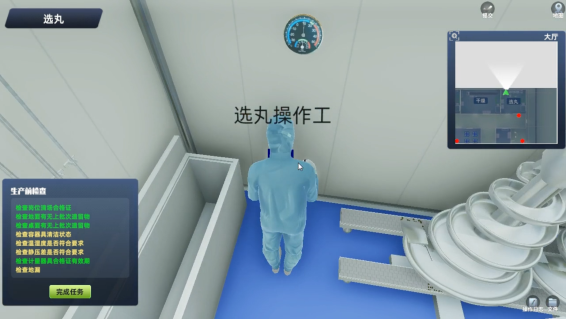 根据现代工厂GMP生产要求,通过三维仿真模拟,共设置包含称量、粉碎过筛、合坨、制丸、干燥、选丸等虚拟仿真岗位。帮助学生通过岗位实操理解并掌握理论知识点,从而达到理论与实践相结合的目的。