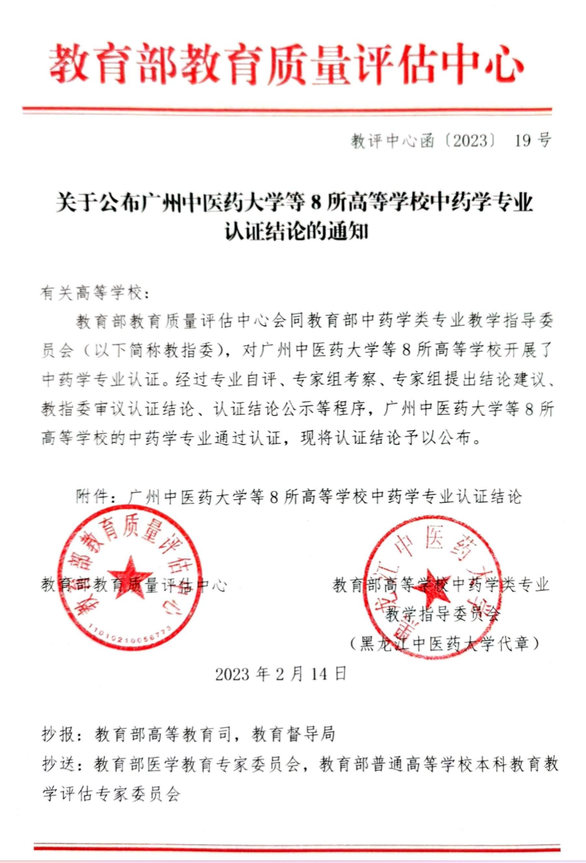 2022年10月,教育部教育质量评估中心会同教育部中药学类专业教学指导委员会(以下简称教指委),对437必赢会员中心开展了中药学专业认证。经过专业自评、专家组考察、专家组提出结论建议、教指委审议认证结论、认证结论公示等程序,中药学专业通过认证。
