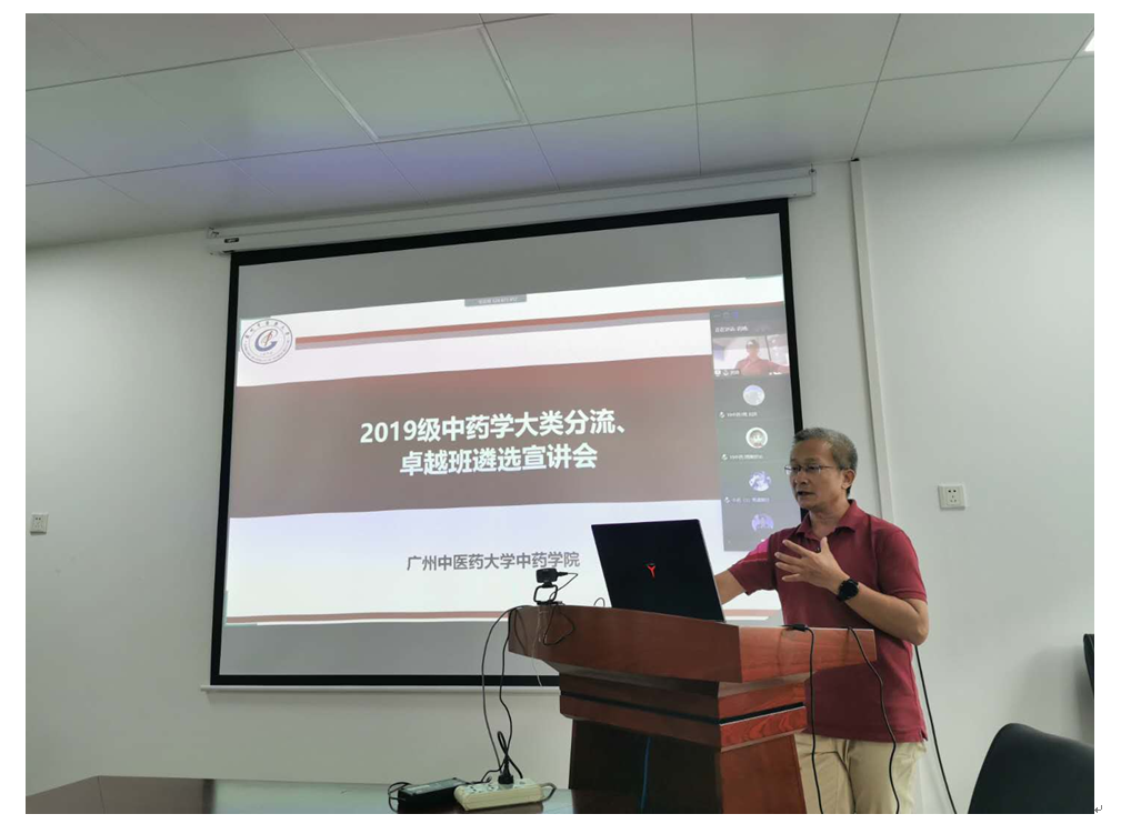 会议同时连线了澳门科技大学中医药学院周华副院长。周华副院长从澳门科技大学概况、澳科大国家重点实验室、澳科大学术科研成绩、学生学习情况等方面为同学们展示了多方位视角的澳门科技大学。也对即将遴选组成的2019级中药学卓越班同学表示欢迎,希望大家能通过此次交流学习有更宽阔的国际视野,更好的专业发展。