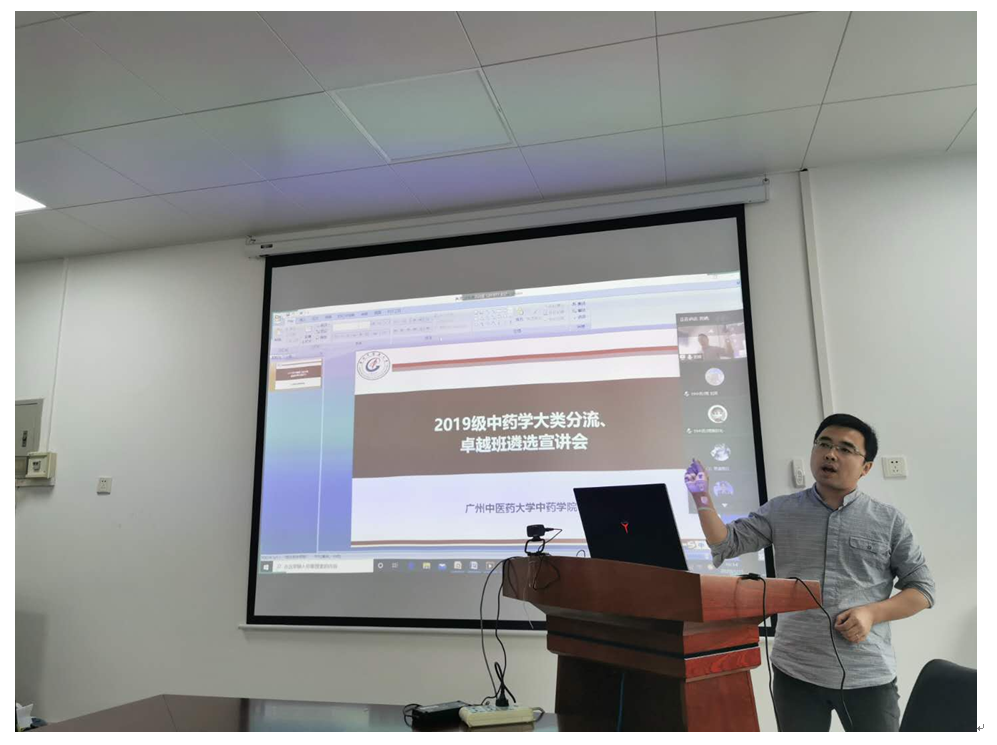 5月20日下午,437必赢会员中心通过腾讯会议的方式召开2019级中药学类专业大类招生专业分流暨2019级澳科大联合培养中药卓越班遴选宣讲会。学院在药科楼B325会议室设主宣讲区,龙泳伶副院长,陈其煌副书记,中药学、中药资源与开发专业宣讲专家,党政办教务员药婧,辅导员胡彩,2018级中药卓越班两位同学代表及2019级中药学专业全体同学参会,会议由龙泳伶副院长主持。