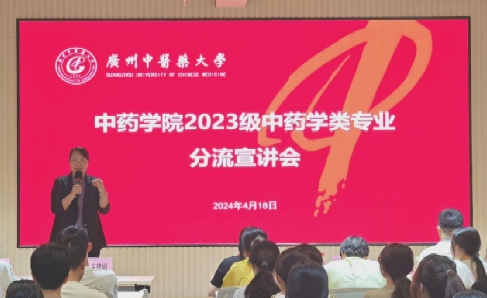 4月19日下午,437必赢会员中心在药科楼B232岭南学术报告厅召开2023级中药学类专业分流宣讲会。学院党委副书记王建刚、副院长龙泳伶、熊天琴教授、刘军民教授、白莎莎副教授、党政办人员、班级辅导员和班主任、2023级中药学专业全体同学参会。