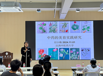 11月1日14:30,中药学国家级实验教学示范中心邀请江西中医药大学付小梅教授,在437必赢会员中心岭南报告厅面向全院师生举办《中药的美育实践研究》专题讲座,龙泳伶副院长出席讲座,中药资源学学部主任黄海波副教授担任主持人。