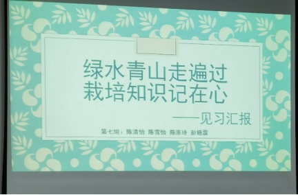 同学们先后参观学习了农作物新品种的研究、引进、试验、示范与推广技术,广藿香、广金钱草、两面针、九里香、岗梅、三叉苦等南药新品种选育技术,两面针、九里香、三叉苦、岗梅等紧缺南药种苗繁育技术、栽植技术以及产业化生产基地建设,南药种质资源圃的建设与保存等。此外,同学们还参观学习了智能温室大棚育苗技术、气雾栽培技术、水肥一体化现代水肥管理技术、现代物联网、土壤改良技术等现代农业生产技术在中药农业生产上的运用,感受到科技兴农的强大作用。见习期间,同学们还实际参与了种子撒播大田育苗实操、溪黄草种质资源的表型多样性观测与分析。11月5日,同学们对本次《药用植物栽培学》实践课程的学习成果进行了汇报展示,不仅制作了各式各样精美的PPT,有的还录制、剪辑了富有趣味的小视频。