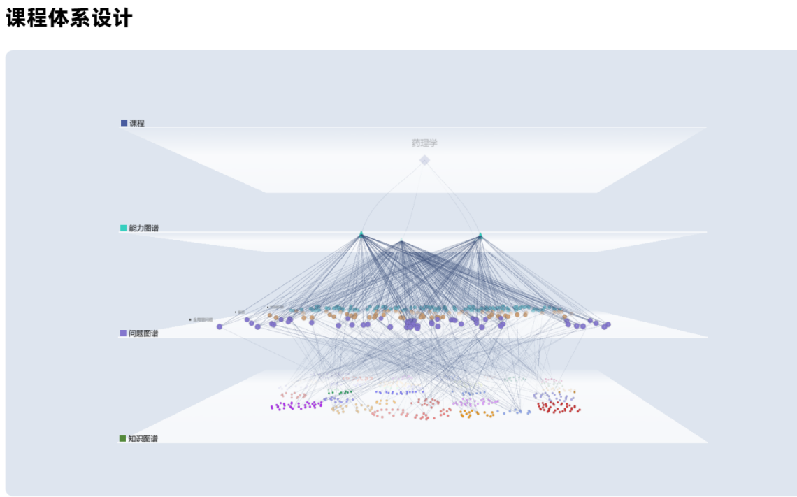 课程团队深入剖析学生的学习需求,从课程的知识体系结构出发,围绕知识图谱的建设开展了大量的研究工作。课程设置涵盖了药理学的核心内容,包括能力体系、问题体系、知识体系和教学资源,目前共计凝练了579个知识点、嵌入了多达648个教学资源,搭建问题图谱249。通过引入AI技术,课程的教学模式和内容得到了创新与提升,为学生提供了个性化的学习支持,推动药理学教育的智能化发展。