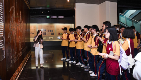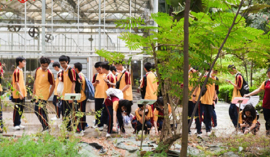 在时珍山、药王山研学环节,学生们化身“小神农”,实地辨识岭南特色药材,观察记录其形态特征与药用价值。中医药博物馆内,从古籍文献、传统炮制器具到现代中医学发展,立体化呈现中医药古今发展脉络。通过显微观察实验,学子们直观了解光谱分析等物理技术在中药鉴定中的应用,切身感受现代科技与传统医学的深度融合。