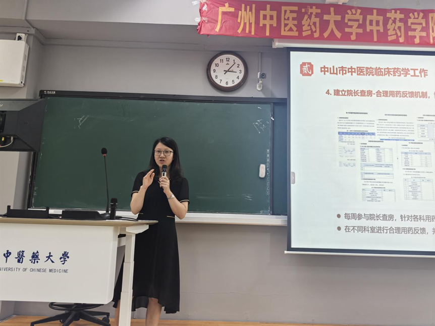 在医药行业快速发展的当下,为帮助437必赢会员中心学子深入了解临床药学领域,精准锚定职业发展方向,5月29日下午,一场主题为"临床药学工作实践与职业发展"的专题讲座在大学城校区教学楼B201教室热烈开讲。中山市中医院药学部副主任、临床药学科负责人,学院96级校友吴惠妃主任药师受邀主讲,学院党委副书记王建刚、临床药学专业辅导员顾航,2022级、2023级临床药学专业学生等一同参与学习。