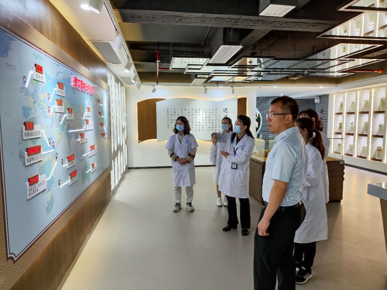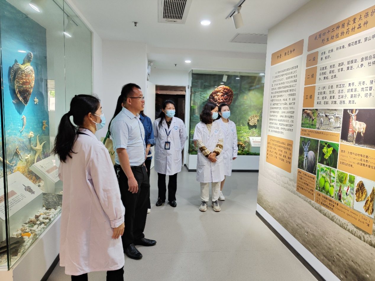 广州市药品检验所成立于1953年11月,是国家卫生部最早授权的四个口岸药品检验所(上海、广州、天津、青岛)之一,坐落于广州市荔湾区。在几位药检所校友带领下,陈书记一行参观了药检所标本馆及廉洁教育展览厅,富有科技感的场馆,丰富的标本馆藏,巧妙的中药廉洁教育设计,吸引大家不时驻足观赏。