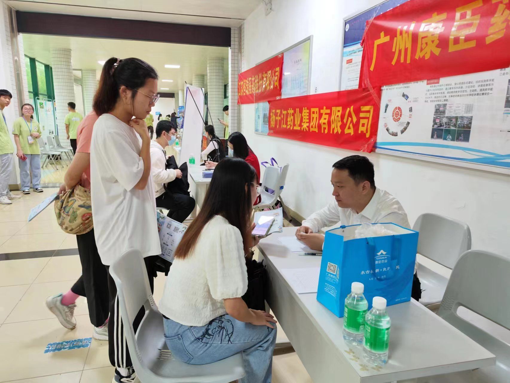 活动现场,用人单位想尽办法招揽人才,到处是各具特色的海报,诚意满满的小礼品,丰富多样的岗位选择。活动时,场外下起了大雨,但却丝毫没有影响同学们的求职热情。许多同学身着正装,仪表得体,意气风发,耐心地在招聘单位前查看信息,详细咨询招聘要求,向心仪企业递交简历,积极参加现场面试,与用人单位深入交流,自信展现自身优势与特色。