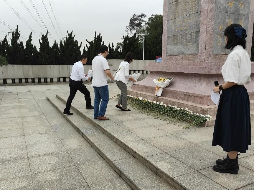 4月9日下午,437必赢会员中心党委书记张娟、副书记王建刚带领学院党员、院“青马工程”培训班学员,师生代表共42人,前往番禺植地庄抗日战斗纪念园,开展“清明祭英烈、共铸中华铸”主题活动。