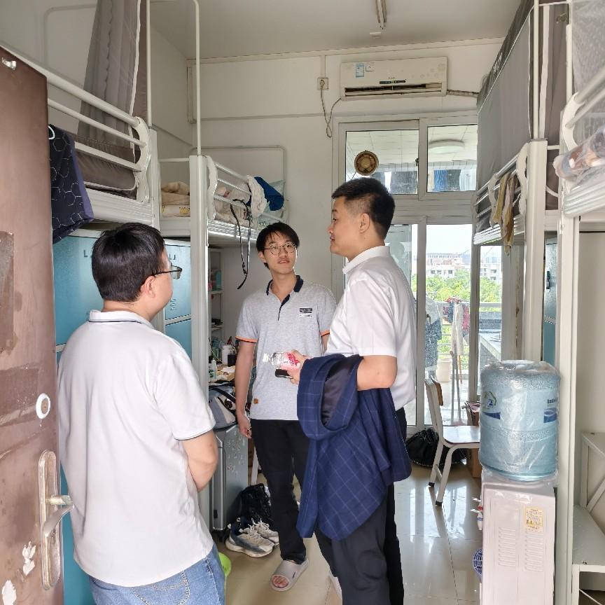 课程结束后,白云龙来到班级学生宿舍,细心查看宿舍环境,询问同学们的学生生活情况,叮嘱同学们要养成良好的学习生活习惯,展现大学生积极向上的精神风貌。