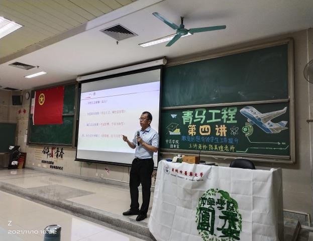 11月10日下午,437必赢会员中心团委在综合楼302举行了“青马工程”第四讲,主讲人为学院党委副书记陈其煌老师。