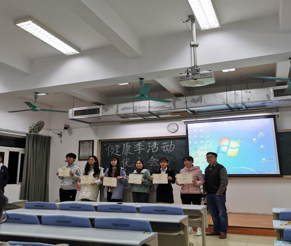 评优会上,主持人回顾了本次“健康季”活动的总体开展情况。接着各班级代表上台,结合PPT、视频汇报班级“健康季”活动开展情况。各班结合班级实际,开展学生健康打卡,通过组织爬山、篮球赛、八段锦、羽毛球赛、趣味运动以及观看心理电影、心理游戏等多样形式,开展班级“健康季”活动。评委老师和同学根据现场汇报情况以及第一轮评分情况,评出活动组织一、二、三等奖并颁奖。18中药卓越班获得一等奖,18中药大班、19中药1班获得二等奖, 18资源、20中药3班、19药学1班获得三等奖。
