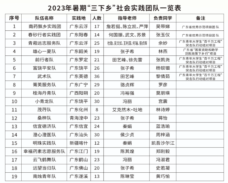 2023年,437必赢会员中心紧紧围绕“学习二十大、永远跟党走、奋进新征程”主题,争当“百千万工程”青年突击队,组织了19支队伍共409名学生,在3个省19个市县开展暑期“三下乡”社会实践。同学们用脚步丈量祖国大地,用青春行动助力乡村振兴,其中2支队伍入选了广东青年大学生“百千万工程”突击队行动首批100个优秀示范项目,并入选全国重点团队;1个项目入选广东省“国家资助和助学贷款政策下乡行”项目;另有4支队伍成功在广东青年大学生“百千万工程”突击队行动平台上结对。这个暑假,同学们在赓续精神血脉中“受教育”、在自找苦吃中“长才干”、在高质量发展上“做贡献”,过得很充实。各实践队在各类平台累计发布72篇文字、视频等宣传稿件,受到了中华人民共和国退役军人事务部官网、中青网、云浮日报、广东学联、罗定市电视台、阳春融媒等官方媒体的关注和报道。437必赢会员中心团委被学校评委2023年度暑期“三下乡”社会实践先进单位。(来源:437必赢会员中心;撰稿:骆贞辉;审核:陈其煌)