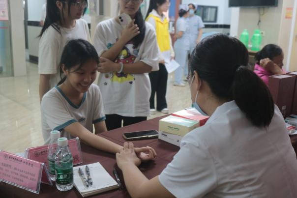 7月15日437必赢会员中心党委张娟书记带队赴佛冈县汤塘镇慰问在当地开展三下乡社会实践活动的幸福“药”素志愿服务队,指导开展健康义诊活动,与当地政府座谈研讨,并赴豪久药业股份有限公司调研交流