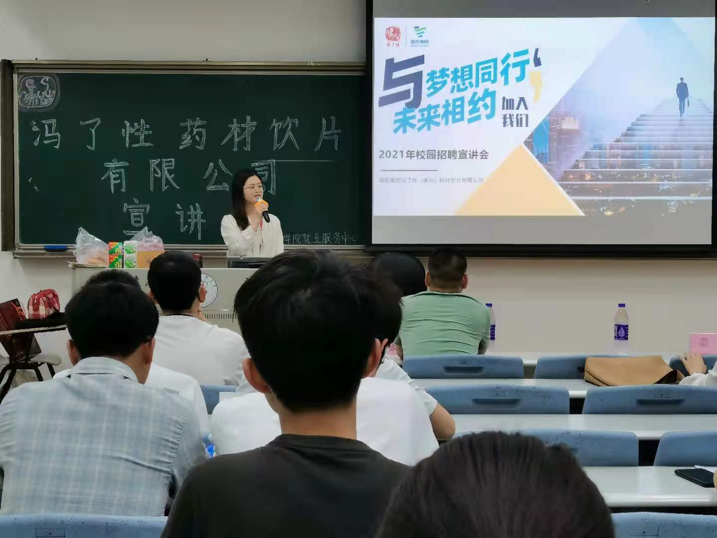 本次宣讲企业分别为国药集团冯了性(佛山)药材饮片有限公司(04月06日)、广州白云山潘高寿药业股份有限公司(04月07日)、广东罗浮山国药股份有限公司(04月08日)。企业宣讲会上,各企业不仅分享了各自企业的创办背景、企业文化、工作环境、招聘职位等,也向同学们传递了积极向上的就业观念,分享了职场上的心得体会。