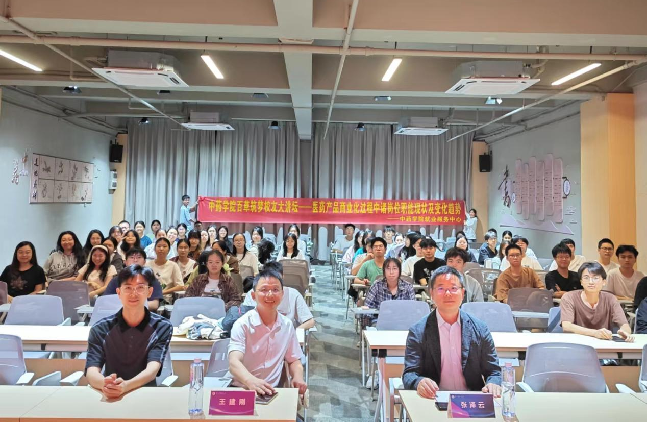 张泽云结合医药行业发展的形势,介绍了药品实验室研发、临床研究、生产申报、商业运营方案等药品生命全链周期中职业岗位变化及岗位能力要求,同时结合自己读书及职业发展经历,就选择职业方向、制定职业规划、职场心态等多个方面,为在场的同学们进行了深入浅出的讲解。张泽云建议师弟师妹要提前明确职业目标,主动学习、多尝试,关键要勤奋,以此找到适合自己的职业道路。讲座现场气氛热烈,嘉宾分享精彩纷呈,干货十足,同学们踊跃提问,收获满满。