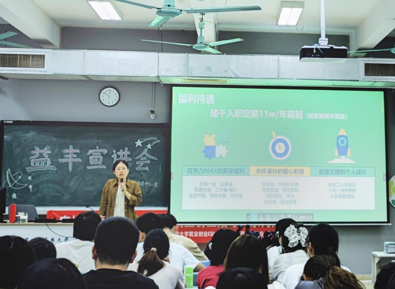 10月21日18:30,益丰大药房连锁股份有限公司来我校大学城校区教学楼A402开展校园宣讲招聘会,共46名毕业生现场参与。